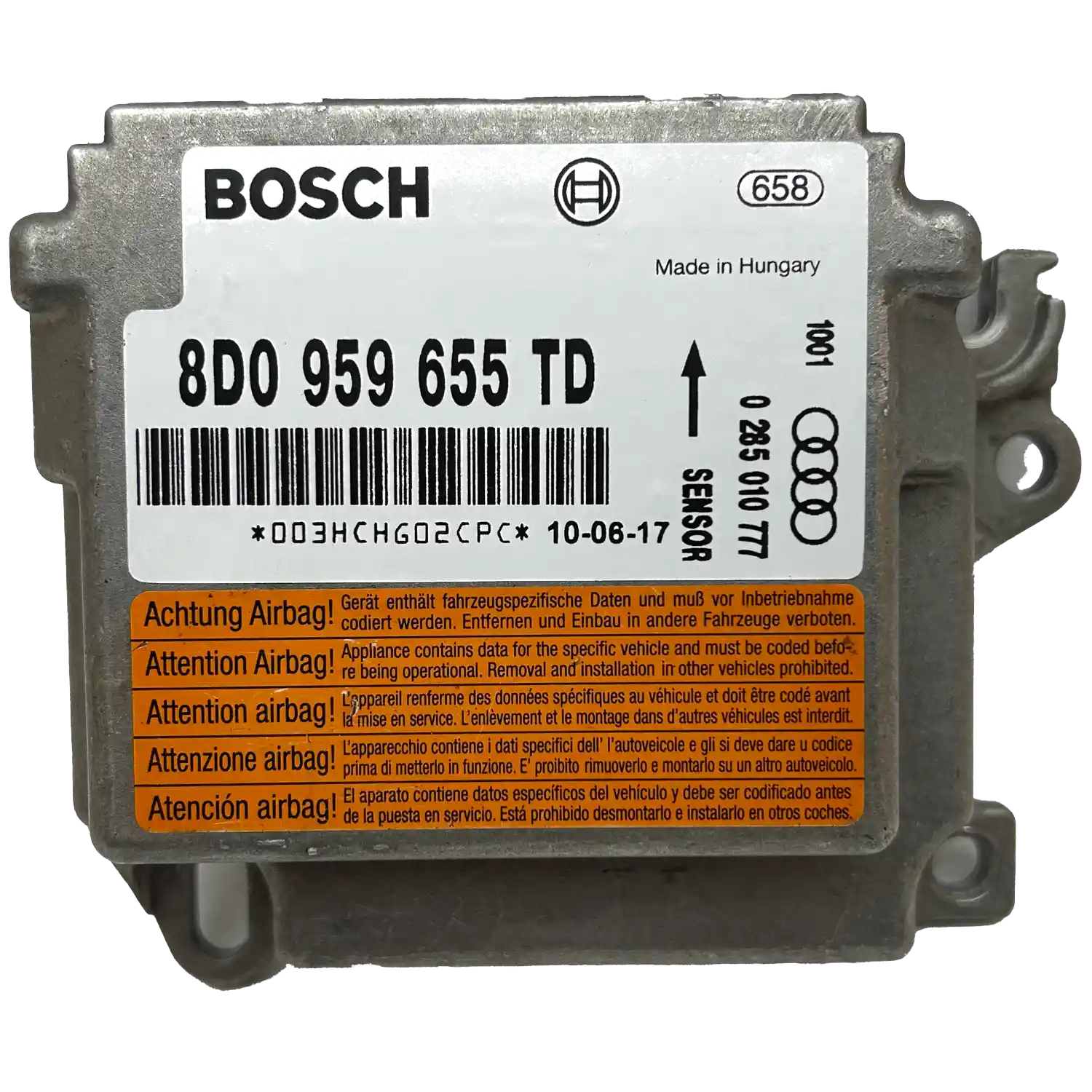 Geprüftes Original-Ersatzgerät mit der Teilenummer 8D0 959 655 TD für das Audi A4 B5 8D Airbag-Steuergerät. Sofort lieferbar aus eigenem Lager – getestet, funktionsfähig und direkt einbaubereit.